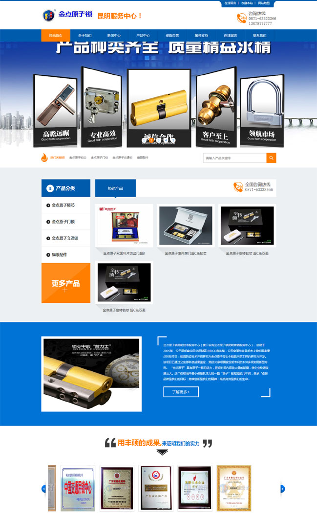 誠(chéng)信經(jīng)營(yíng),信譽(yù)卓著。公司本著“品質(zhì)卓越、誠(chéng)信第一、顧客至上、不斷創(chuàng)新”的原則,一直致力于研發(fā)和生產(chǎn)高安全的產(chǎn)品,盡最大努力滿足客戶要求,贏得了廣大客戶的依賴和贊譽(yù),金點(diǎn)原子產(chǎn)品已被“盼盼”、“美心”、“飛云”、“鑄誠(chéng)”等知名品牌的防盜門,“愛迪爾”電子鎖、IC卡鎖、指紋鎖和鈴木·豪爵(Suzuki Haojue)摩托車鎖等知名大型企業(yè)廣泛使用。2007年公司與浙江忠恒鎖業(yè)有限公司實(shí)施戰(zhàn)略聯(lián)盟,共同生產(chǎn)“忠恒·金點(diǎn)原子”高安全C級(jí)防盜門專用鎖,共同打造中國(guó)高安全防盜門鎖具的航母。
